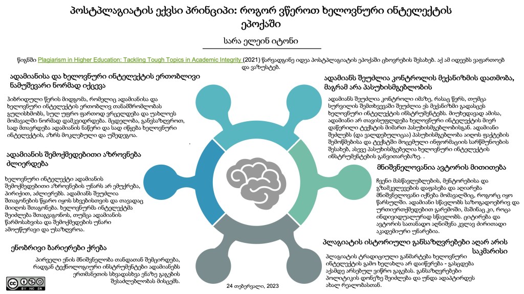 The Postplagiarism Research Lab is pleased to announce the release of the Georgian translation of the Six Tenets of Postplagiarism infographic. This resource represents a significant step in making the framework accessible to educators and researchers in Georgia and beyond. Postplagiarism refers to a period in human history where artificial intelligence becomes an integral part of daily life, influencing how individuals teach, learn, and interact.